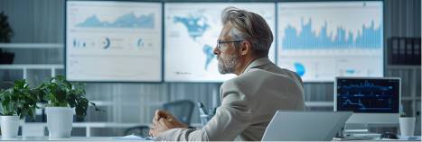 Fachkraft analysiert Daten auf Bildschirmen, konzentriert sich auf Wertstromdesign zur Prozessoptimierung.