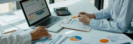 Fachleute überprüfen Diagramme und Daten, betonen einen wertbasierten Rahmen für das Facility Management.